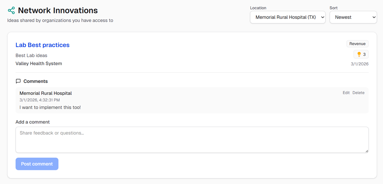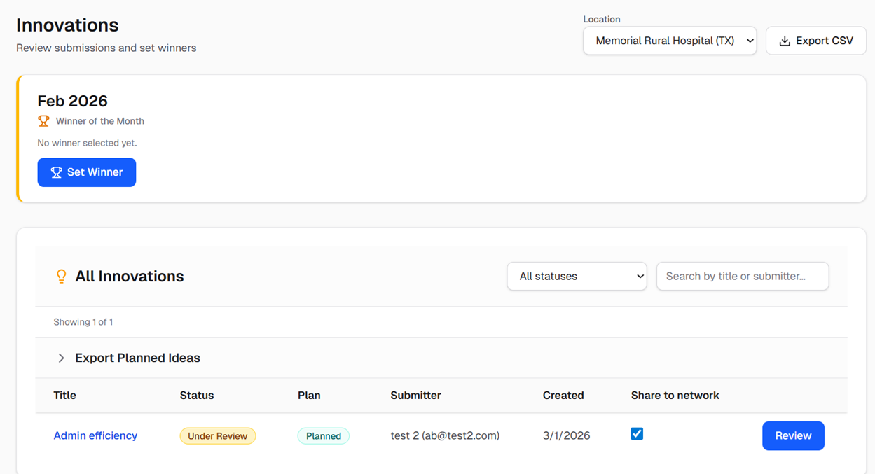 When appropriate, select "Share to Network" to share your organization's innovation with other hospitals or health centers in your network.